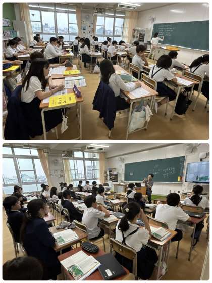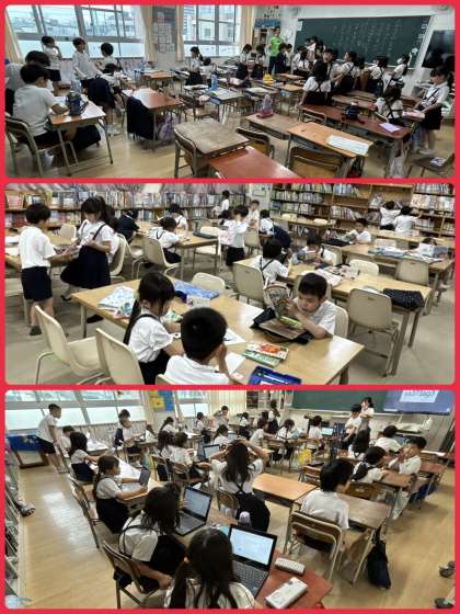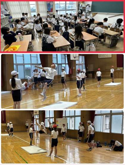 6年1組体育は「走り高跳び」の学習。「助走」「踏切」「空中姿勢」「着地」…、はさみとびのポイントを考えながら、めあてをもって取り組んでいました。