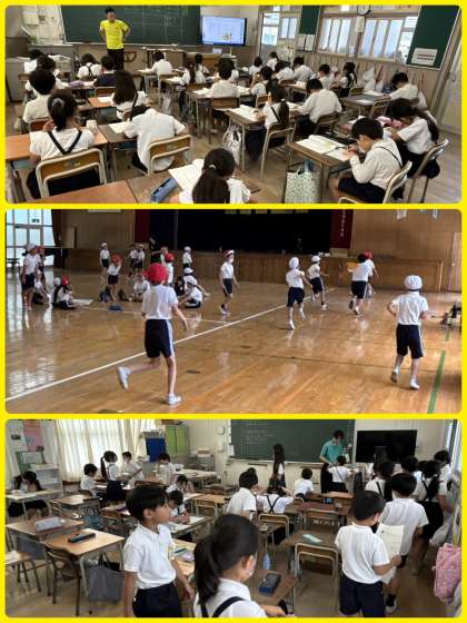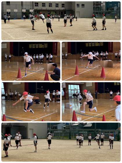 6年生の体育は走り高跳び。1組は運動場、3組は講堂で取り組みました。さすがは6年生。助走のスピードも空中姿勢もダイナミックで迫力があります。自分の目標に向かって全力で取り組んでほしいです。がんばれ!