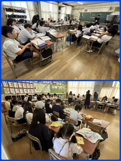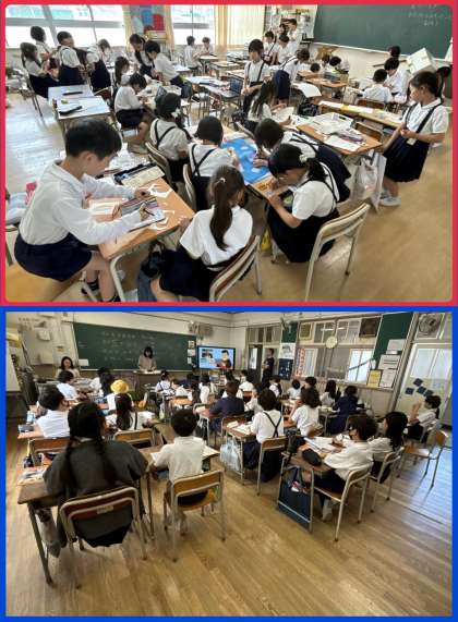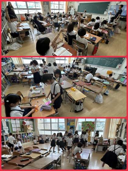 5年3組家庭科の学習。玉どめ、玉結び、なみ縫い、返し縫い、ボタン付け、、、教え合いながら懸命に取り組んでいました。お時間がありましたら、おうちでも練習してみてください。