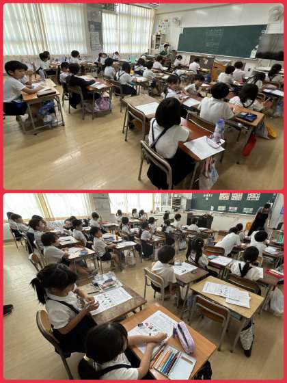 2年2組は栄養教諭による食育の学習。食べものを「赤」「黄」「緑」のグループにわけて、それぞれのはたらきについても教えてもらいました。そのあと、給食の献立に使われている食べものをグループにわけていきました。好き嫌いせずに食べることが体にとっていいこともわかってくれたかな。苦手なものがある人は少しずつがんばっていきましょうね。