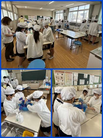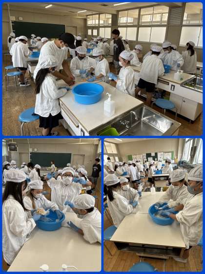 5年生が味噌づくりに取り組みました。大豆と米麹と塩でつくりました。10月か11月には発酵しておいしいお味噌ができます、できているはずです。そのお味噌を使ってお味噌汁をつくります。楽しみにしておきましょう。おうちの人に作り方などお話してね。