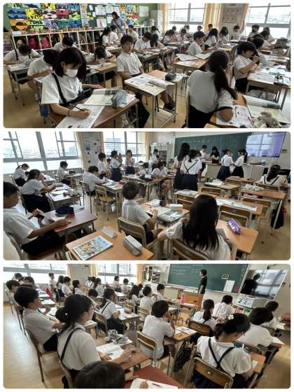 3年生はゲストティーチャーを招いて、それぞれのクラスで「韓国・朝鮮」の学習。食べ物など暮らしについて学びました。お隣の国、韓国だけでなく、世界のいろいろな国に興味をもって調べていきましょう。