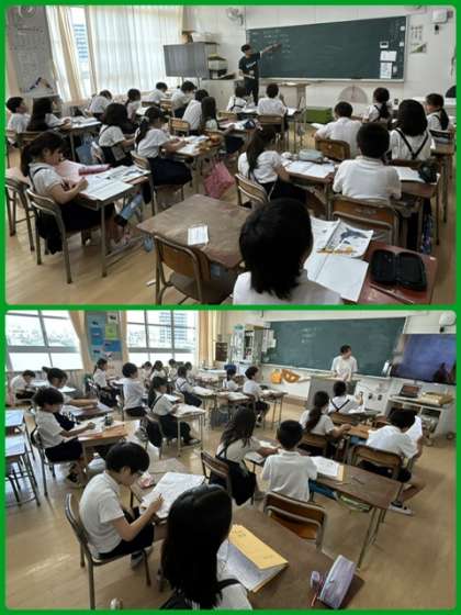 2、3、4組でも学習を行いました。来週からはプールに入ります。着替えもします。ご家庭でもお子さんにお声かけをお願いします。