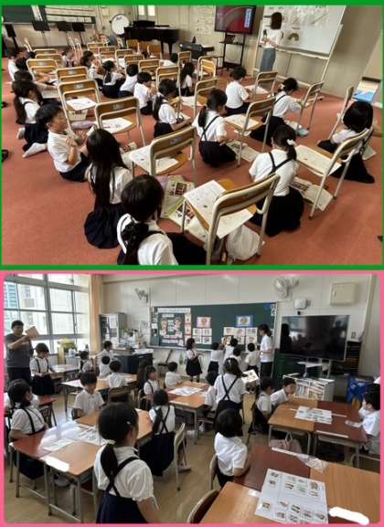 1年1組は保健の学習「いいタッチ、いやなタッチ」。「てをつなぐ」「うでをくむ」「あたまをなでる」「ハイタッチ」…、自分にとってはいいタッチでも、相手にとってはイヤなタッチになることもあります。相手の気持ちを考えること、そしていやなときは「『いや』ということ」「にげること」「おとなにつたえること」をみんなで確認しました。