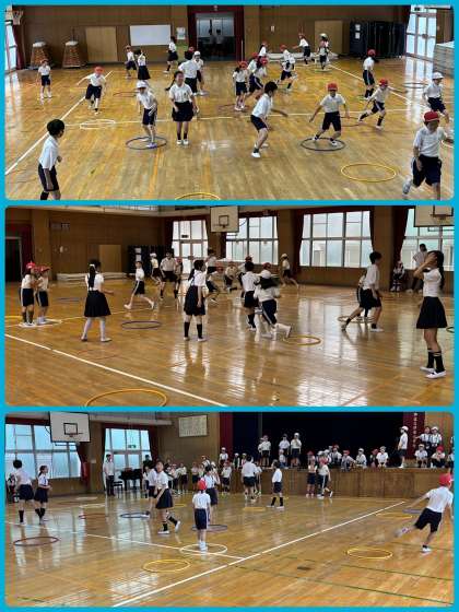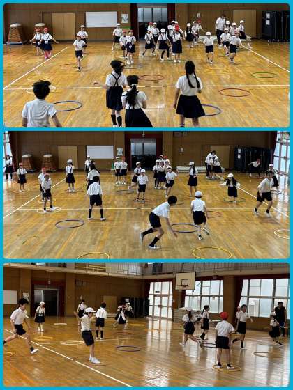 今日の「ぐんぐんスポーツタイム」は、小雨のため講堂で4年3組4組が行いました。がんがん楽しみ、ぐんぐん体力を伸ばしました!