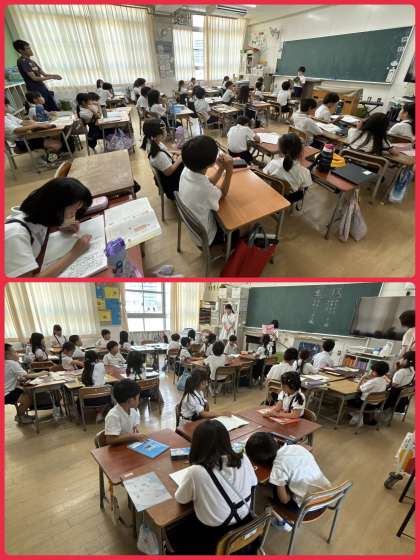 2年1組3組国語の学習は「話そう、二年生のわたし」。だいじなところがつたわるように話すことがめあてです。2クラスとも一生懸命に伝えようと話していました。めっちゃやりたい人も緊張して苦手な人もよい経験です。結果はどうあれ、そういう機会を持たせていきたいです。