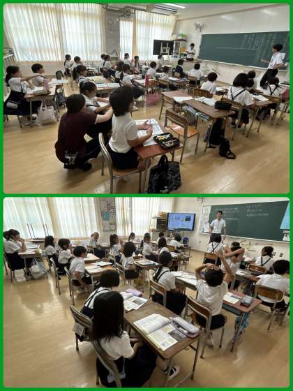 4年1組国語の学習は「広告を読み比べよう」。2つの広告を読み比べて、それぞれの良いところを考えていました。順番に自分の考えを堂々と発表して、感心しました。