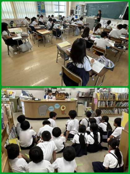 4年4組図書の時間。返却、貸し出す本が決まったあとは、係のみなさんの読み聞かせが始まっていました。1学期たくさんの本を読んできた4年生。夏休みもたくさん本を読んで自分の世界を広げてほしいです。