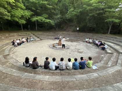 まずはキャンプファイヤー係が先にキャンプ場に集まって最終確認です。がんばって!