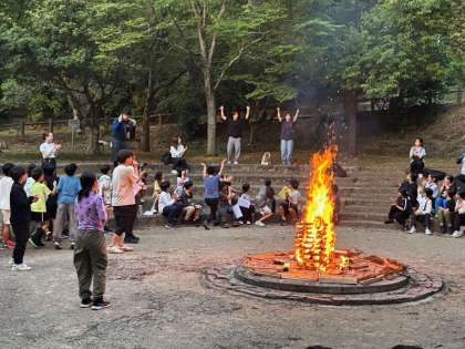 ここでサプライズ!学校の仕事を終えて、先生が子どもたちのようすを見にきてくれました。盛り上がる子どもたちです。ありがとうございます!