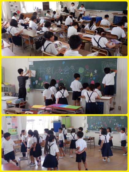 2年生は全クラスでお楽しみ会が行われていました。宝探し、イスとりゲーム、ダンスにドッジボールと各クラスが工夫を凝らして取り組んでいました。1学期ここまで協力してがんばってきましたものね。明日は1学期最後の日、がんばろうね。