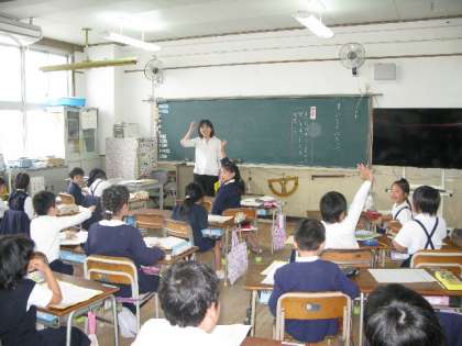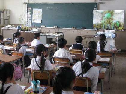 2組は理科「たねのふしぎ」の学習。3年生は休み時間、虫眼鏡をもって校内の草花の観察をしっかりしています。今日は新しく入った大きなテレビを見て、発芽について学習をしました。