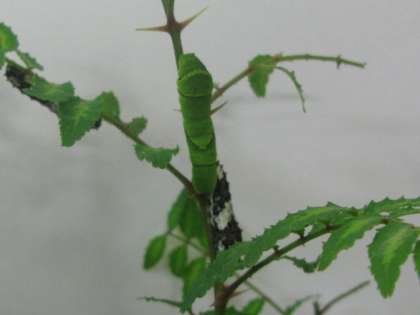 理科の学習で蝶の成長を勉強します。そこで3年生の各クラスでは山椒の葉っぱにいるアゲハの幼虫を観察しています。おおきくなあれ!