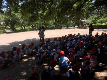 遊具で遊んだ対岸の公園で弁当をいただきます。この公園の裏は苦楽園駅です。みんなで仲良くいただきますをします。