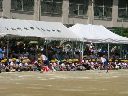 迫力、技もさることながら、3年生の演技前に見せた男子全員の円陣とエール、それを見守り拍手する女子、クラスごとに競い合う中での互いの連帯感そんなものをしっかり感じました。そして何より、全力・真剣、そして笑顔が素敵な体育祭でした。本校の卒業生も今日の体育祭をきっちり担える人材として中学校へ送れるようにと感じさせられた半日でした。
