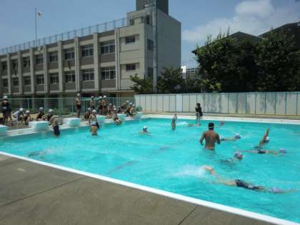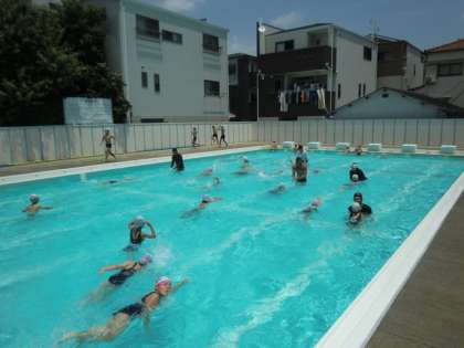 区役所の事業で水泳の講師の方にきていただき、子どもたちに水泳指導、泳ぎ方水の楽しみ方を教えていただきました。すごく楽しかったです。また、今日はひさしぶりの夏日和で水が気持ちよかったです。
