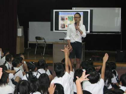 春の遠足でいった箕面昆虫館から出前昆虫教室がありました、今年はカマキリの専門家に来ていただきカマキリの秘密を教えてもらいました。