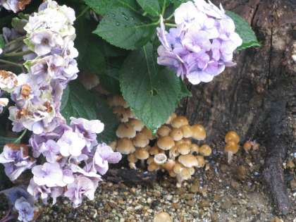 梅雨らしいお天気で、運動場で遊べない一日でした。西校舎と北校舎の間の渡り廊下のそばの花壇にきのこを発見。1年生が見つけてくれました。きれいにきのこらしくはいていますが、数日後にはかれてしまいました。
