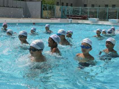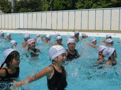 二学期最初のプールです。突き抜けるような青空の下、水を変えたばかりで少し冷たいプールでした。夏休みの練習の成果もあって、みんな元気に水を楽しんでいました。