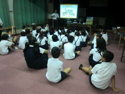 関西電力より環境教育の出前授業をしていただきました。発電の仕組みや電気の話を中心に、みんなの生活にかかせない、電気について考える学習です。