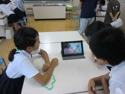 5年生2組、家庭科の授業研究会で、初めてタブレットを学習で使用しました。タブレットの操作は先生よりみんなの方が上手で楽しく学習に取り組めました。