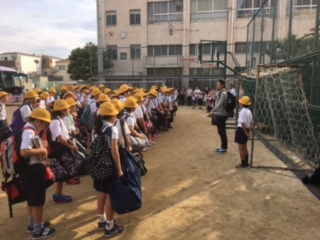 6年生全員元気に出発式であいさつをしました。保護者の皆さま、早朝よりお見送りいただきありがとうございます。