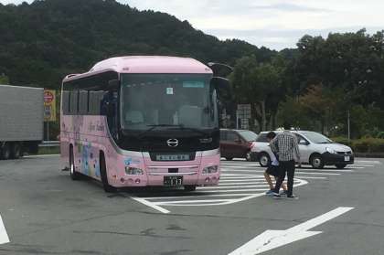 伊勢道多気PAでトイレ休憩。後、30分ほどで、志摩市の資料館に着きます。バスの中は、楽しい歌声で笑い声いっぱいです。