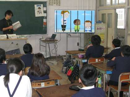 朝の会の時間帯に全学年で外国語学習に取り組みました。歌ありアニメありで楽しく言葉の勉強をしました。