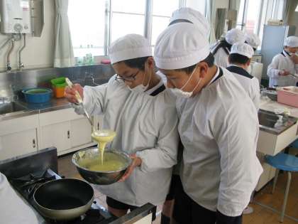 クレープ・ホットケーキ作りをしました。みんなけっこういい手つきでフライパンをふっていました。おいしそうなクレープ・ホットケーキが焼けました。