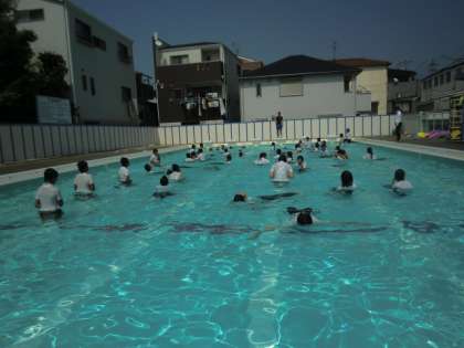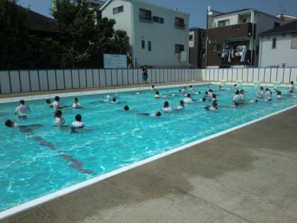 5・6年生が着衣泳をしました。水着での泳ぎと比べたときの動きにくさやペットボトル1本でも正しい使い方で息が楽にできる姿勢になることを体験しました。水から自分の命を守る方法や泳げない人でもおぼれている人を助ける方法について学習しました。