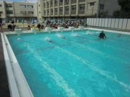 2年生は、きまりを守って、水にもぐったり、ういたりして楽しく遊ぶことができるようになりました。ビート板を使っての練習をくりかえし、9月からは25メートルにチャレンジをしました。「プールが楽しくなった。」とうれしそうに話していました。