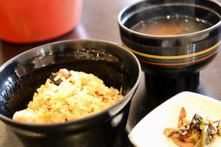 昼食は、たこめしです。みんな食べ終わりました。いよいよこのあとは閉舎式です。