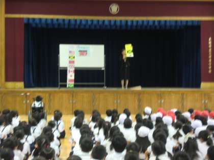 運動会に向けて、児童朝会で校長先生からのお話がありました。リオデジャネイロオリンピックリレーチームの記録をもとに個人の力と協力する力の両方の大切さについてのお話でした。運動会でも自分の力だけでなく友達と協力してさらに力を発揮できればすばらしい運動会になると思います。また、今週から4年生でも教育実習がはじまり全校児童への紹介がありました。現在2名の教育実習が行われています。