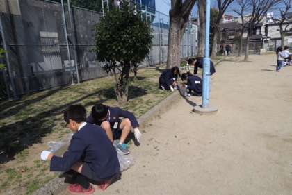 6年生が、お世話になった地域への感謝の気持ちを込めて、地域の公園(3か所)をグループに分かれ清掃活動を行いました。
