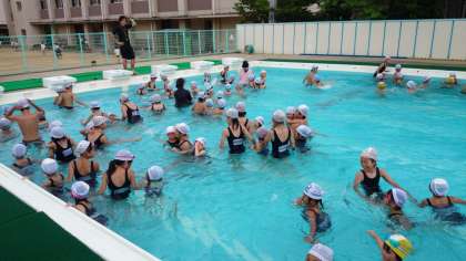 先週、近畿地方も梅雨入りし、お天気が心配でしたが、予定通り「プール開き」をすることができました。1年生は、初めての大きなプールで、少し不安そうでしたが、6年生のお兄さん、お姉さんが一緒に入ってくれたので、安心して水遊びができました。2年生〜5年生の子どもたちも、それぞれ、もぐったり、浮いたり、泳いだりしながら、楽しいプール開きとなりました。プール納めの時には、全員が「プール大好き」「泳ぐの大好き」になることを願っています。