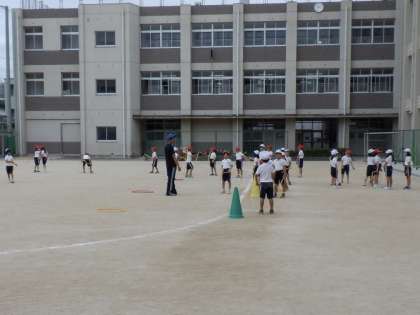 2年生は全クラス体育の学習。走る運動と鉄棒遊びに取り組みました。