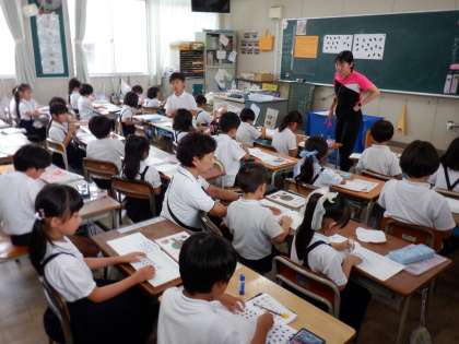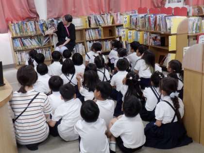 木曜日は図書館司書さんが来てくださる日。1年生4クラスが司書さんと図書の時間を過ごしました。写真は3組の読み聞かせのようすです。本を読むって楽しいなぁ。