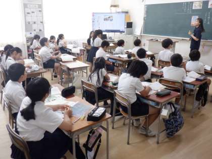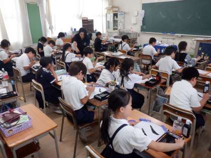 3年3組国語の学習はお習字。はらいに気をつけながら「八」の漢字に集中して取り組んでいました。
