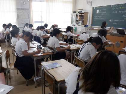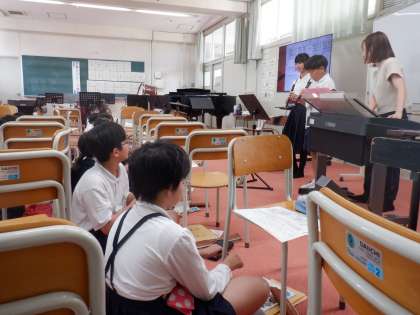 3組音楽科の学習。2人ずつリコーダーテストにチャレンジしていました。きれいな音色でリコーダーを演奏していました。