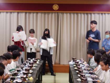 食事係さんが献立を絵に描いて説明してくれました。ありがとう!「いただきまーす」