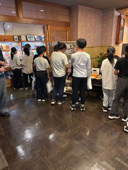 クラスごとに、お風呂、おみやげ、ふりかえりタイム。おみやげ屋さんでは一人一人がよく考えて選んでいました。家族思いの気持ちを聞いて、こちらまで嬉しくなりました。