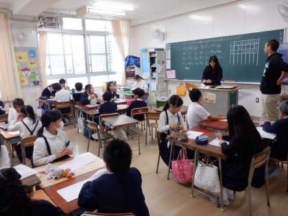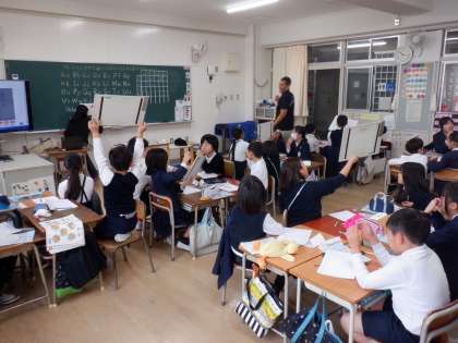 2組3組外国語の学習は、アルファベット文字遊び。いつものように『ABCソング』のあとは、アルファベットクイズ。26文字のうち、25文字をみんなで発音。出てきていない1文字はなにかな?私はわかりませんでした…。
