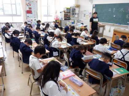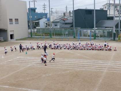 今日はかけっこの練習も。明日の相互鑑賞もがんばろうね!