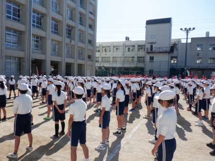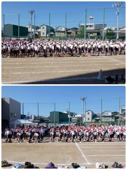 23日、快晴の中、団体演技相互鑑賞会を行いました!それぞれの学年演技、応援団、開閉会式、どれもすばらしく、拍手と歓声があがりました。子どもたち、よくがんばりました。