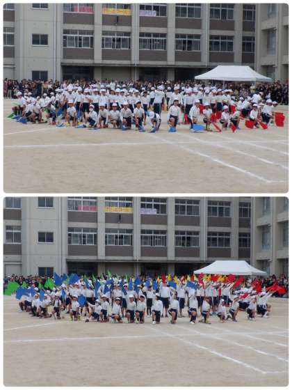 タイトル通り、太陽のように輝いていました!4色のフラッグがはためいて、かっこよかったです!これからも輝け!3年生!