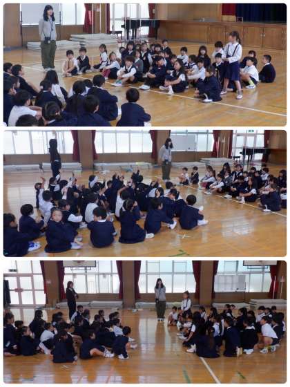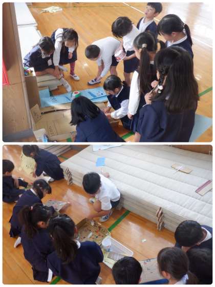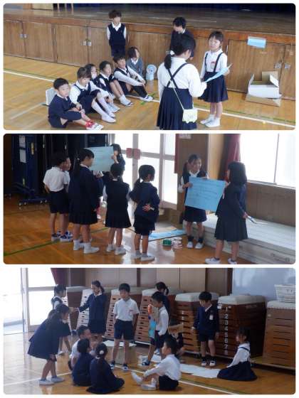 2年生が1年生を招待して行う「おもちゃランド」。30日は2年4組のみなさんが1年3組のみなさんを招待して行いました。1年生に喜んでもらおうと今日までに懸命に作ってきたおもちゃ。説明もポスターを見せながらわかりやすく話していました。たくさんの笑顔があふれ、あたたかい時間となりました。4組のみなさん、ありがとう!