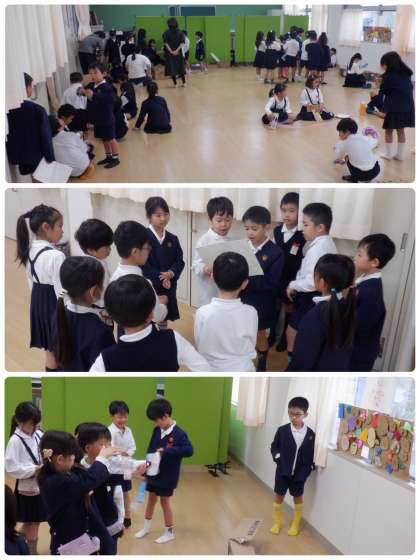 2年生が1年生を招待して行う「おもちゃランド」。第二弾は、2年2組のみなさんが1年1組のみなさんを招待して行いました。1年生に喜んでもらおうと今日までに懸命に作ってきたおもちゃ。説明もポスターを見せながらわかりやすく話していました。たくさんの笑顔があふれ、あたたかい時間となりました。2組のみなさん、ありがとう!