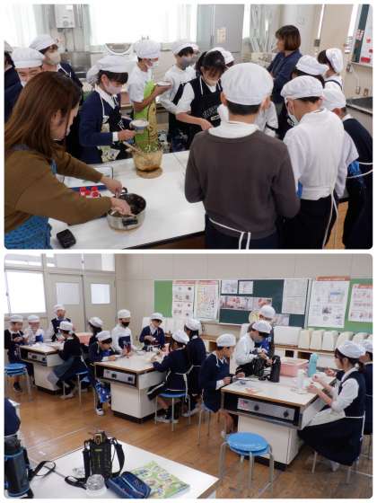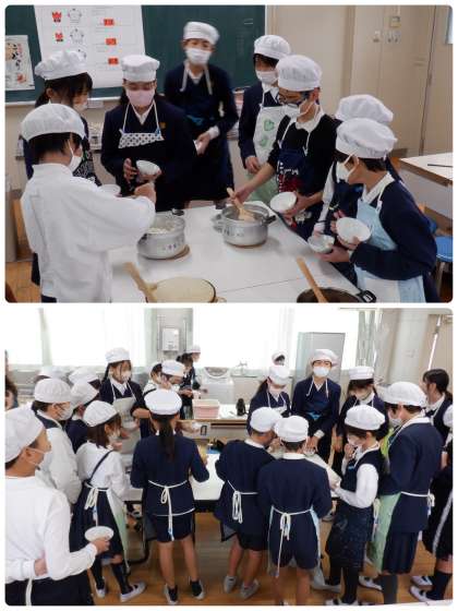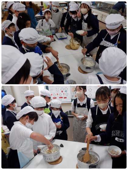 今日は1組2組が調理実習「ごはんを炊こう」を行いました。お米を洗って吸水。そして火加減に注意しながらお鍋で炊いて蒸らす。いつも当たり前に食べているごはんもこれだけの手間がかかるということがわかったと思います。これからさらに感謝して食べましょうね。