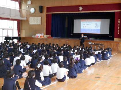 講師の方をお招きして、3年生以上の学年にスマホ・ケータイ安全教室を行いました。スマホやケータイを利用するときに守ってほしいルールやマナー、覚えておいてほしいスマホ・ケータイ・インターネットにかかわるトラブルの事例を紹介してもらい、自分の判断でリスクを回避するためにどうすればいいのかを学習しました。どんなお話だったか、お子さんにお聞きください。また、特にスマホやケータイを持たせているご家庭の保護者のみなさんは、定期的に使い方のお声かけをこれからもお願いします。