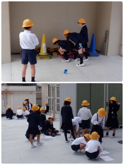 (下)3年1組理科の学習は「光のせいしつ」。日光をはね返す実験なのですが、日差しが差したり、雲に遮られたり、、、。